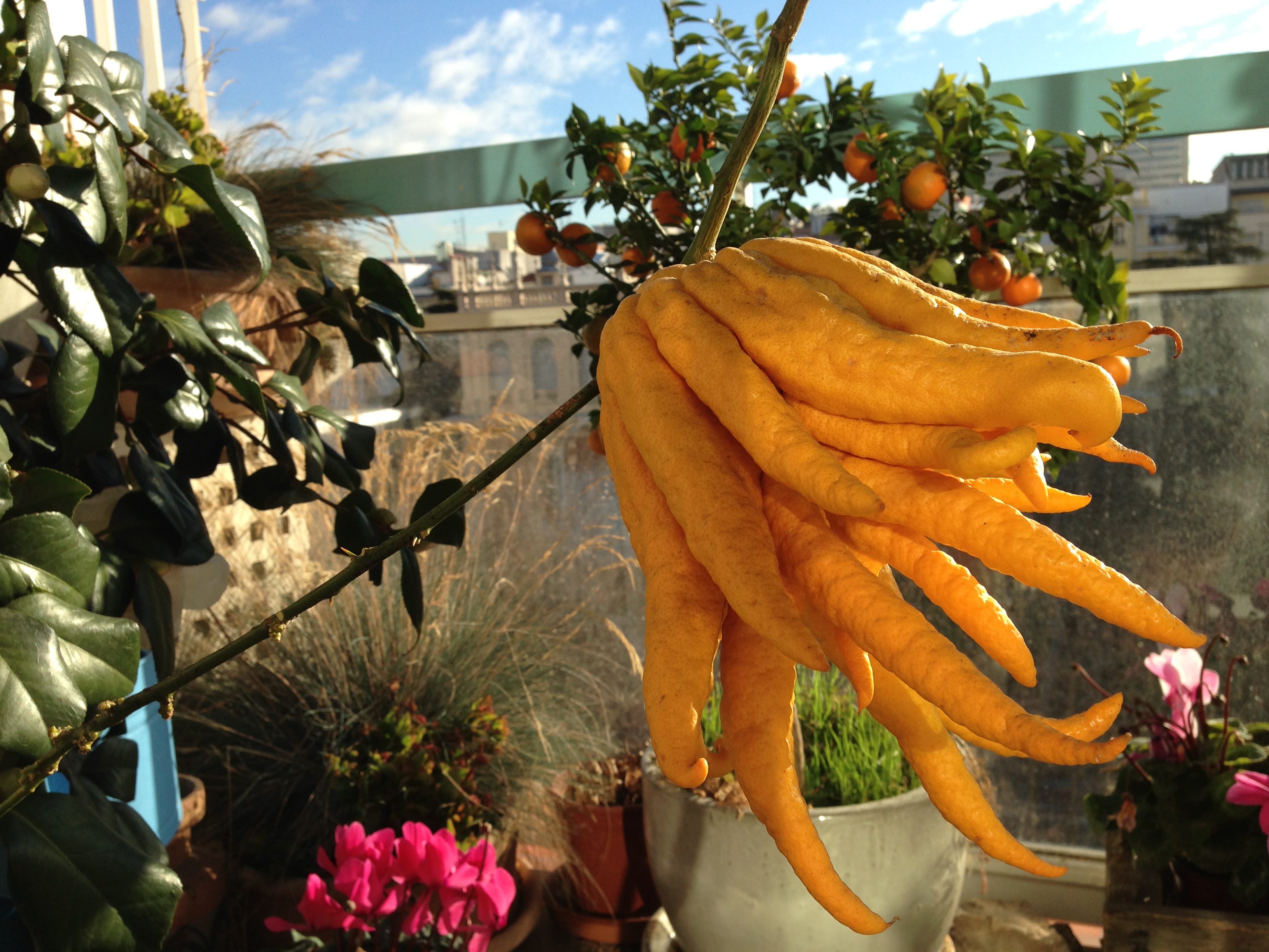 Tengo en mi terraza una mano de Buda, auténtico triunfo de la naturaleza en un Madrid aparentemente hostil con los cítricos.