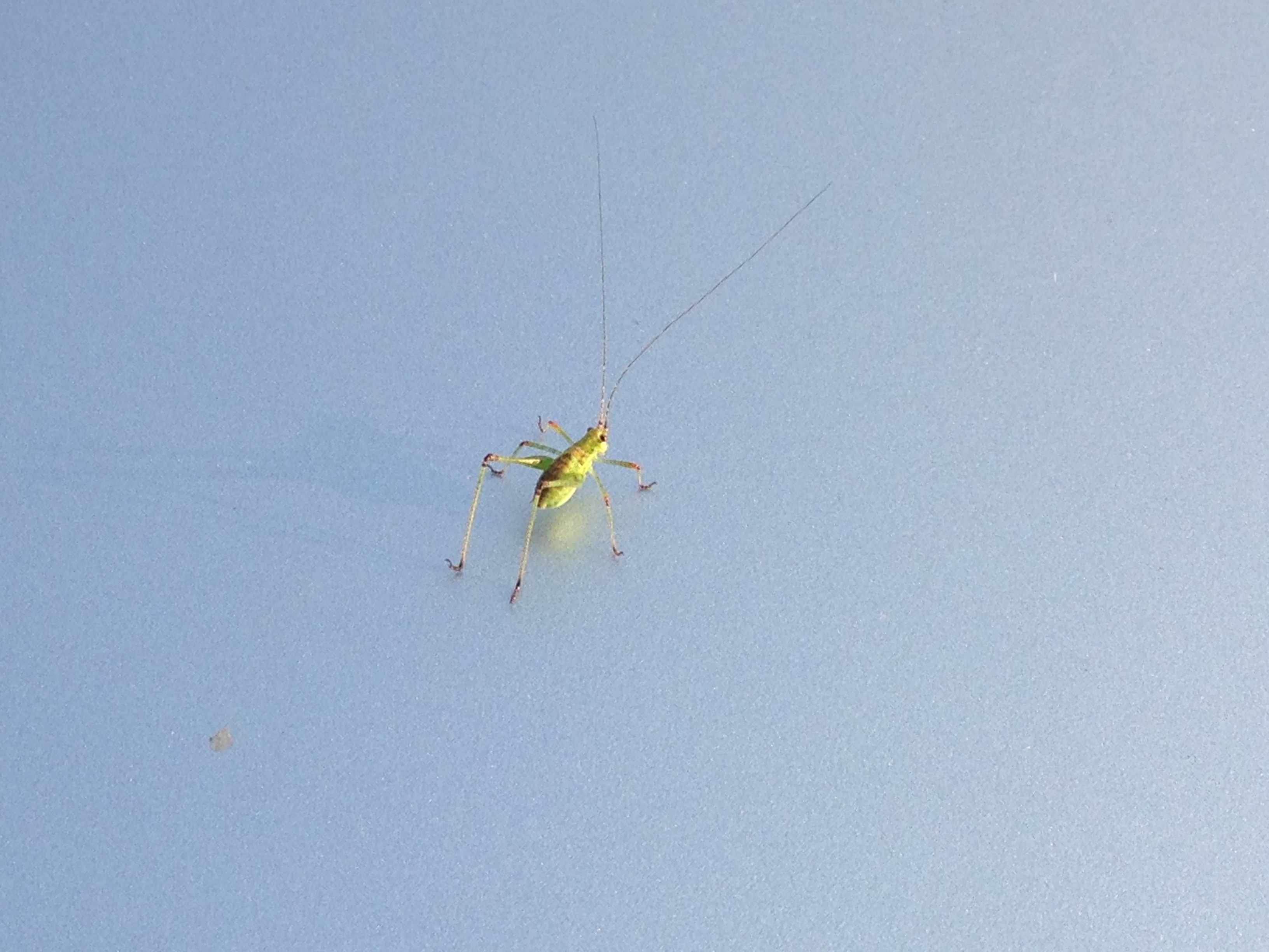 Hoy hemos encontrado este bicho (no se en qué categoría animal incluirlo) en el capó de nuestro coche. Creo que nunca lo había visto hasta hoy. Alguien a mi lado dijo que era un saltamontes!!!